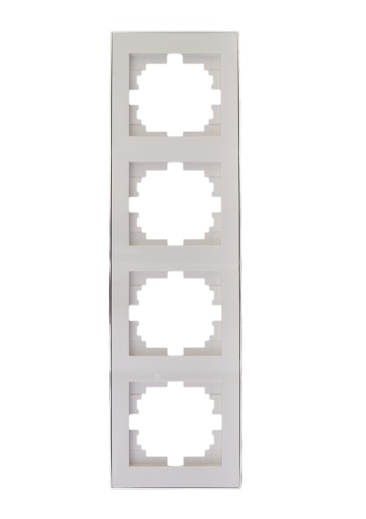 RAIN Рамка 4-ая вертикальная б/вст белая с бок. вст. хром LEZARD (10шт/120шт)