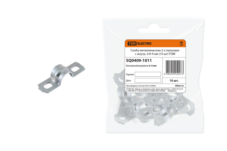 "TDM" Скоба метал. 2-лапк. d8-9мм 10шт/уп