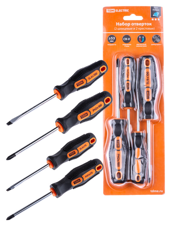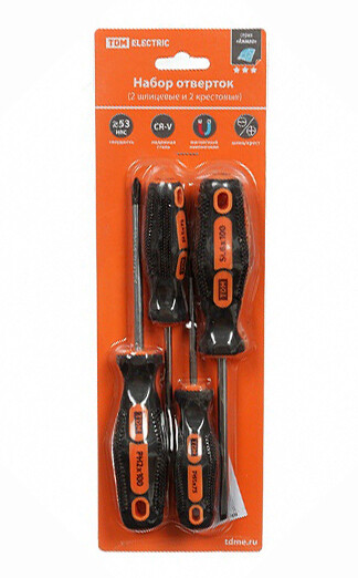 Применение:При сборке конструкций, где используется шлицевой и крестовой крепежДля монтажа крепежных изделий и клемм.Монтаж и демонтаж крепежных элементов Материалы:Хром-ванадиевая сталь CR-VПВХ и мягкая резинаПреимущества:Двухкомпонентная ручка эргономичной формы с массажными точками обеспечивает комфорт при длительной работе, снижает усталость.Намагниченный наконечник для удержания крепежа.Надежная стальУдобное хранение и переноска Назначение:Для проведения слесарно-монтажных работ, соединения и разъединения шлицевого/фигурного крепежа. 0:
