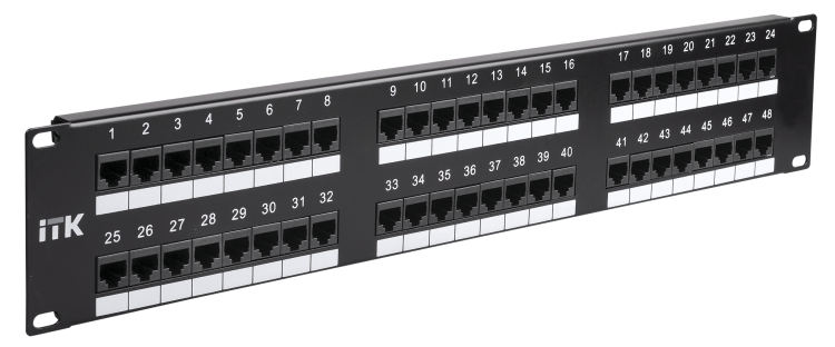 На передней стороне все патч-панели ITK имеют специальную площадку для дополнительной маркировки и цифровую нумерацию портов, на обратной стороне модули IDC имеют цветовую и цифровую нумерацию. Также для облегчения монтажа и укладки кабелей имеются изделия с кабельным органайзером спереди или сзади.