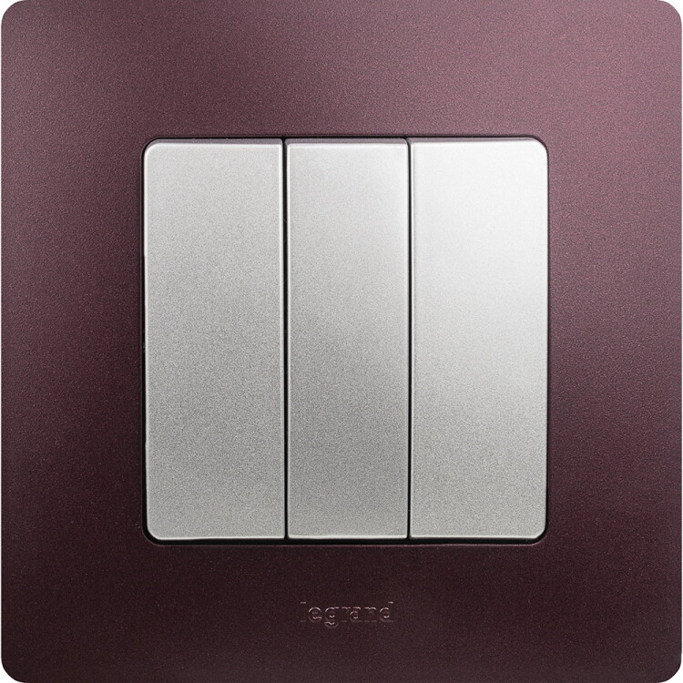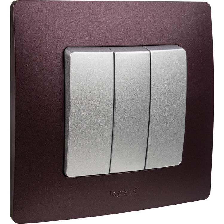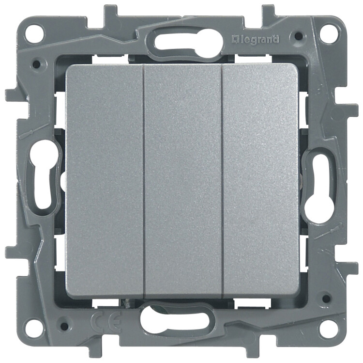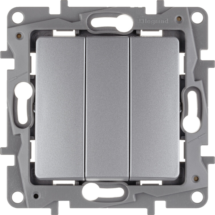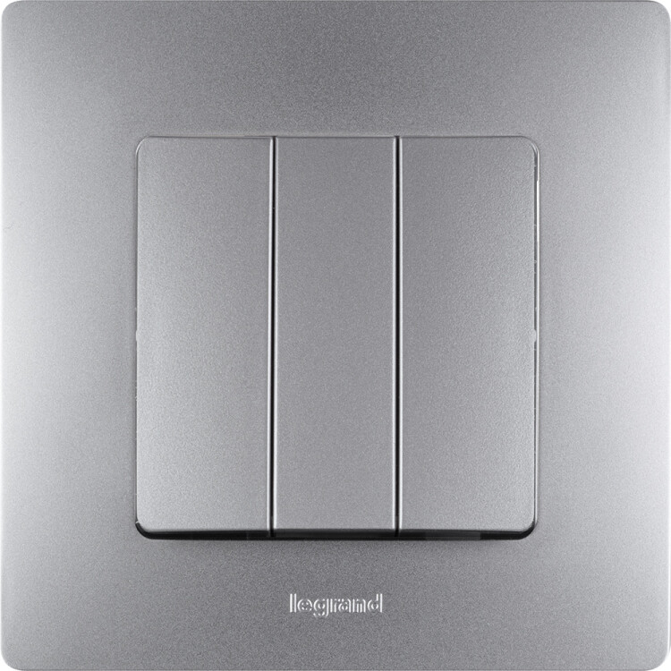 Выключатель трёхклавишный Legrand Etika для скрытого монтажа, номинальный ток 10 А, цвет алюминий.