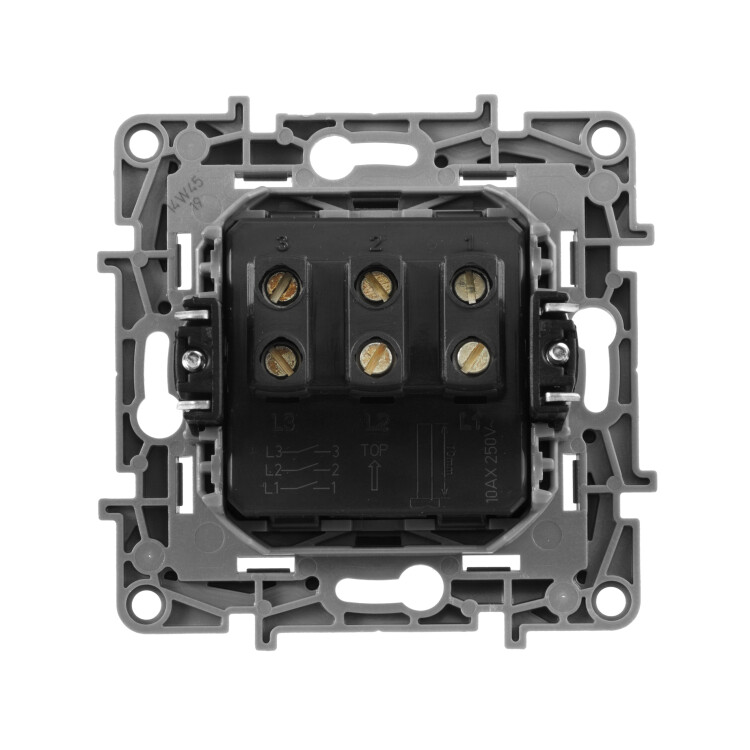 Предназначен для независимого управления тремя нагрузками с одного места. Подходит для управления многорожковыми люстрами и осветительными приборами с большим количеством ламп.