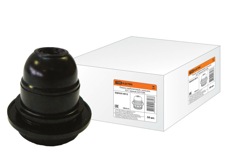 Патрон карболитовый с кольцом, Е27, черный, Б/Н TDM