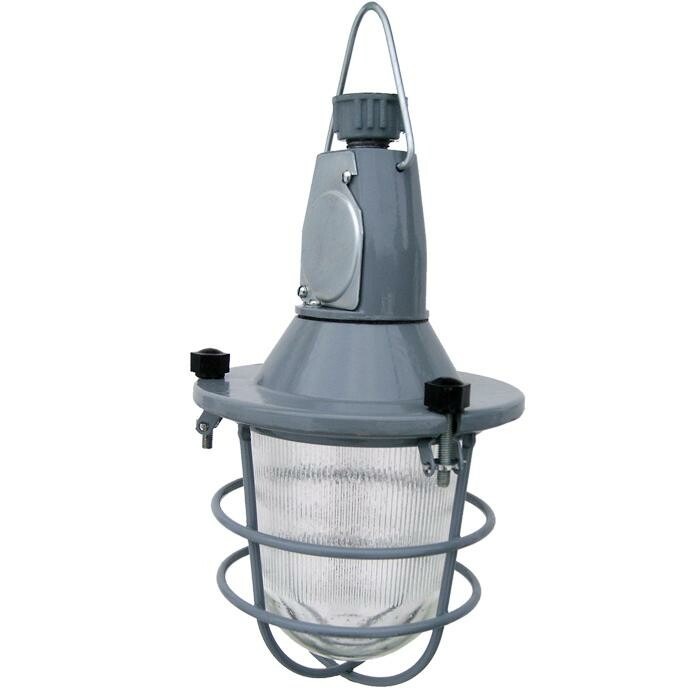 Для технических и производственных помещений с повышенной запыленностью и влажностью. Алюминиевый корпус с порошковой покраской не подвержен окислению. Прочный рассеиватель из стекла надежно соединен с корпусом и обеспечивает пылевлагозащиту IP62, защищен от внешнених воздействий металлической решеткой. Керамический патрон позволяет использовать светодиодную лампу или лампу накаливания до 200вт. крепится светильник на трубу вместе с узлом ввода или на крюк через скобу.
