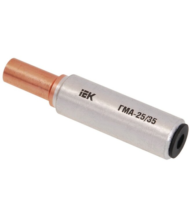 Гильзы медно-алюминиевые ГМА предназначены для соединения медного проводника с алюминиевым различных сечений. Гильзы ГМА со стороны алюминия снабжены колпачком, который защищает внутреннюю часть гильзы от образования оксидной пленки, негативно влияющей на проводимость места соединения гильзы и кабеля.