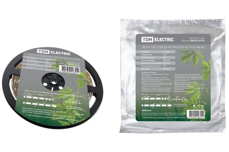 Применение:Для декоративной и функциональной подсветки. Подсветка витрин с ювелирными изделиями и торговых экспозиций.Декоративная подсветка мебели, торцевая подсветка стеклянных полок, баров, витражей и витрин.Контурная подсветка лестниц.Контурная подсветка рекламных букв и коробов.Освещение потолочных конструкций, ниш, интерьерных сооружений.Тюнинг автомобилей.Освещение холодильных и морозильных установок. Материалы:Гибкая медная плата.Клейкая лента 3М с высокими адгезивными свойствами.Световой поток светодиодного чипа SMD2835 56 лм, SMD5050 1113 лм.Материал заливки (IP65) полиуретан.Каждый отрезок 0,5 м промаркирован логотипом TDM ELECTRIC.Преимущества:Простота монтажа. Ленту можно резать кратно 3 светодиодам для удобства на лицевой стороне ленты места отреза обозначены символом Ножницы. На оборотной стороне ленты нанесен клеевой слой производства 3М мирового лидера в производстве клеевых материалов.Долгий срок службы. Применение качественных светодиодов, а также грамотный подбор резисторов гарантируют долгий срок службы (50 000 часов) и снижение светового потока не более чем 2% на каждые 1000 часов работы.Безопасность эксплуатации. Светодиодная лента работает от низкого напряжения 12 В, что абсолютно безопасно для человека. Безопасно для зрения отсутствие пульсаций светового потока. Экологически безопасно не содержит ртути, не требует специальной утилизации.Возможность использования при низких температурах. Для обеспечения степени защиты IP54 в герметичной ленте используется полиуретан материал, который не теряет эластичности при низких температурах (до -40 С).Удобство хранения. Светодиодная лента поставляется в фольгированных ZIP-пакетах, что предоставляет возможность длительного хранения отрезков ленты, защищая их от высыхания клеевого слоя, статического электричества, влажности и пыли.Гарантия качества. Каждый отрезок светодиодной ленты промаркирован знаком TDM, что гарантирует защиту от подделок. На светодиодную ленту предоставляется гарантия 2 года. 0: Применение:Для декоративной и функциональной подсветки. Подсветка витрин с ювелирными изделиями и торговых экспозиций.Декоративная подсветка мебели, торцевая подсветка стеклянных полок, баров, витражей и витрин.Контурная подсветка лестниц.Контурная подсветка рекламных букв и коробов.Освещение потолочных конструкций, ниш, интерьерных сооружений.Тюнинг автомобилей.Освещение холодильных и морозильных установок.