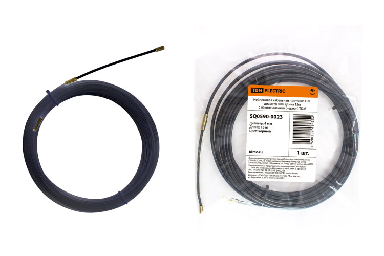 Протяжка оборудована комплектом запрессованных фиксированных наконечников: гибкая пружинная направляющая для проталкивания и заглушка-окно для протягивания кабеля. Индивидуальная упаковка.