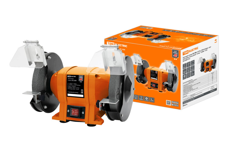 Назначение:br/Выполнение заточных, обдирочных и шлифовочных работ.br/Применение:br/Заточка слесарного инструмента: резцов, сверел, лезвий, ножей, зубил.Заточка садового инвентаря: топоры, лопаты.Зачистка, снятие фасок и заусенцев, обдирка, а также другие работы, требующие обработку металла.br/Преимущества:br/Надежный асинхронный двигатель.Два заточных круга различной зернистости.Пылезащищенный выключатель.Прозрачные искрозащитные экраны.br/Комплектация:br/Цветная картонная коробка со штрихкодом EAN-13, 1 штЗаточной камень - 2 шт.Защитный экран - 2 шт.Заточной станок - 1 шт.br/