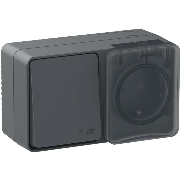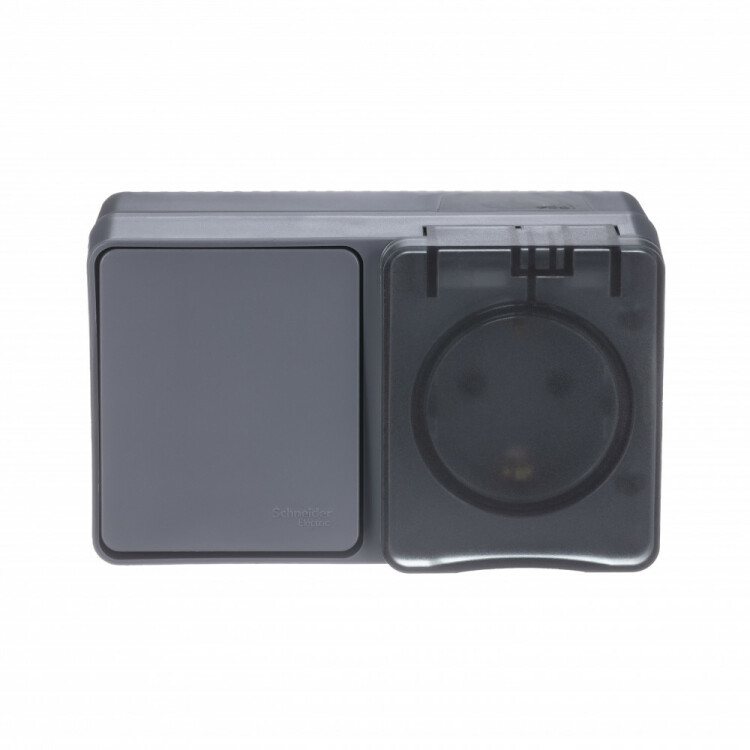 Блок для открытого монтажа из розетки с заземлением со шторками (16А, 250В) и 1-клавишного выключателя (10А).