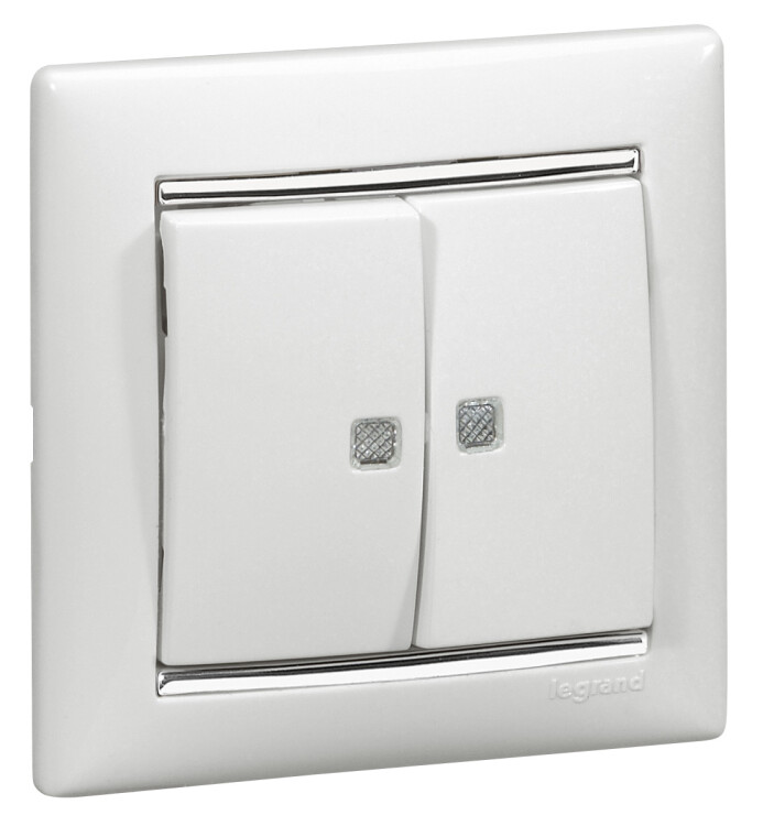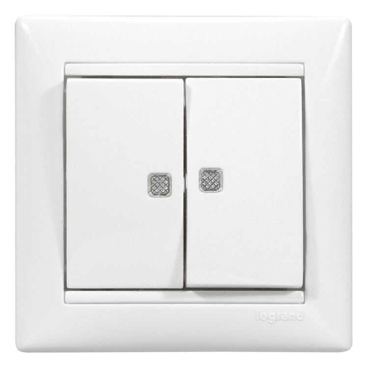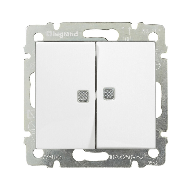 Legrand Valena Бел Выключатель 2-х клавишный с индикацией на каждую клавишу