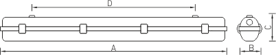 Промышленный светильник в узком корпусе (TH) для освещения небольших технических помещений, автомастерских и паркингов. Быстрый и удобный монтаж на опорную поверхность благодаря монтажным пластинам.