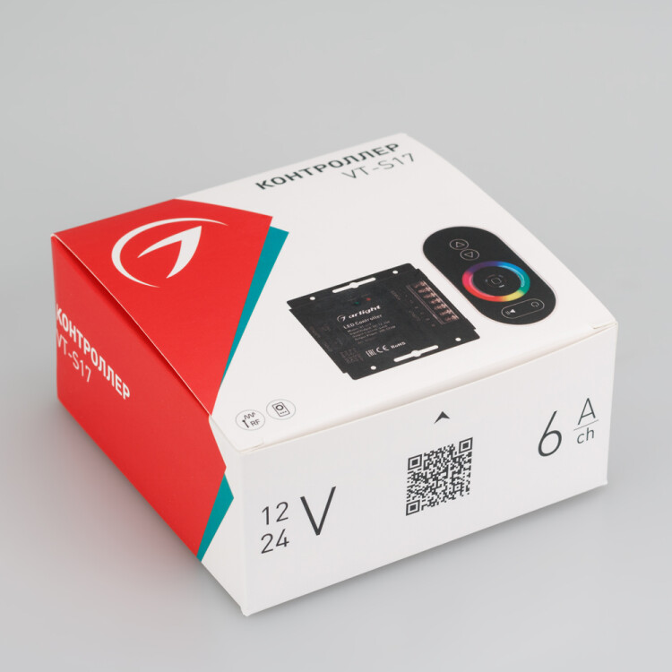 4-канальный RGBW контроллер с сенсорным радиопультом Овал черного цвета. Питание 12-24VDC, макс.ток 4х6A, максимальная мощность 288-576W. Габариты контроллера 91х88х24 мм.