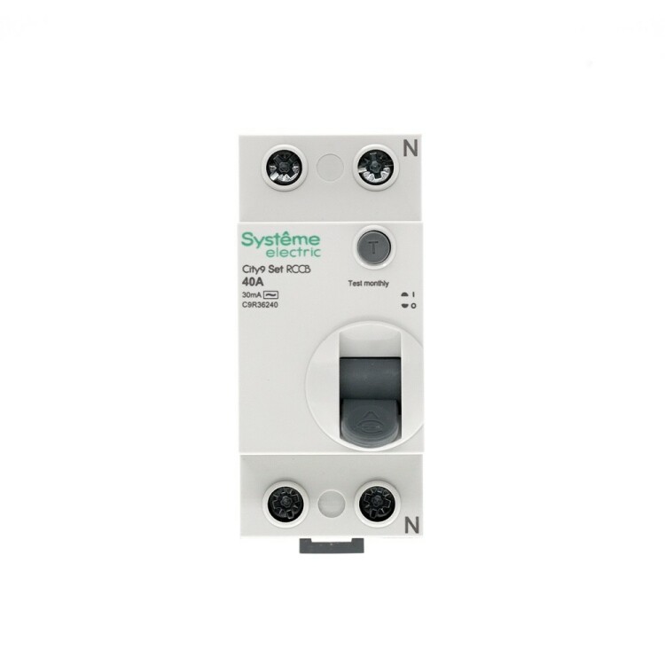 Выключатель дифференциального тока (ВДТ) или устройство защитного отключения (УЗО) серии City9 Set Systeme Electric, 2-полюсны й, номинальный ток 40А, ток утечки 30 мА, тип АС, электромеханический. Применяется в электрических сетях напряжением 230В. Уставка по току утечки 30 мА обеспечивает гарантированную защиту людей при прямом и косвенном прикосновении. Кнопка тест обеспечивает проверку работоспособности аппарата. Крепление на DIN-рейку шириной 35 мм. Подключение сверху и снизу. Безопасные клеммы.