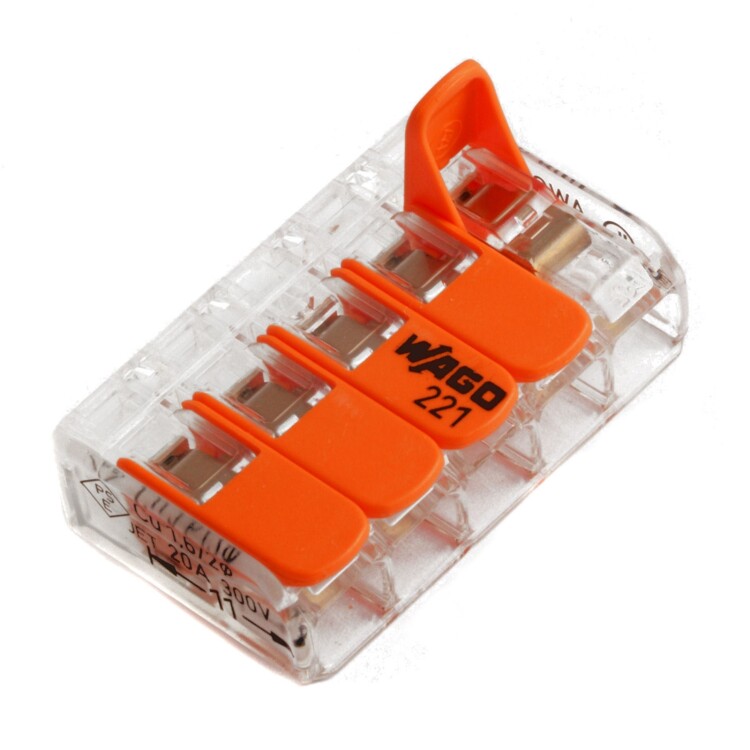 221-415 WAGO Клемма с рычагами компактная для 5-х медных(!) одно-/многопровол. проводников сеч. до 4