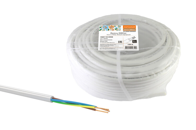 Провод ПВСмб 3х2,5 (100м), белый Народный