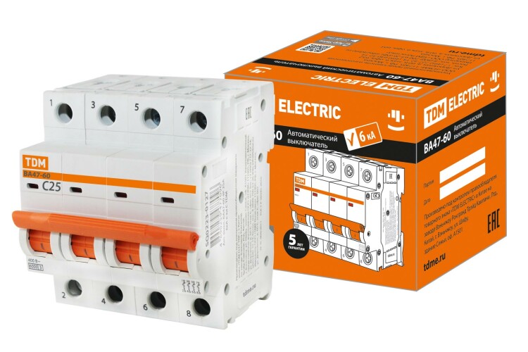 Авт. выкл. ВА47-60 4Р 25А 6кА х-ка С TDM
