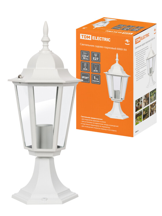 Светильник 6060-24 садово-парковый шестигранник, 60Вт, стойка, белый TDM