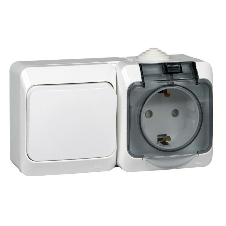 Блок Systeme Electric (ранее Schneider Electric) ЭТЮД (белый, открытой установки) предназначен для применения в сетях до 250В, состоит из розетки на 16А со шторками и без заземления и одноклавишного выключателя на 10А. Удобен в применении и отлично подходит для ванной комнаты (IP44). Сделано в России.