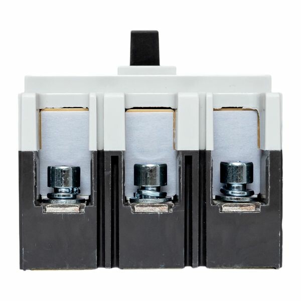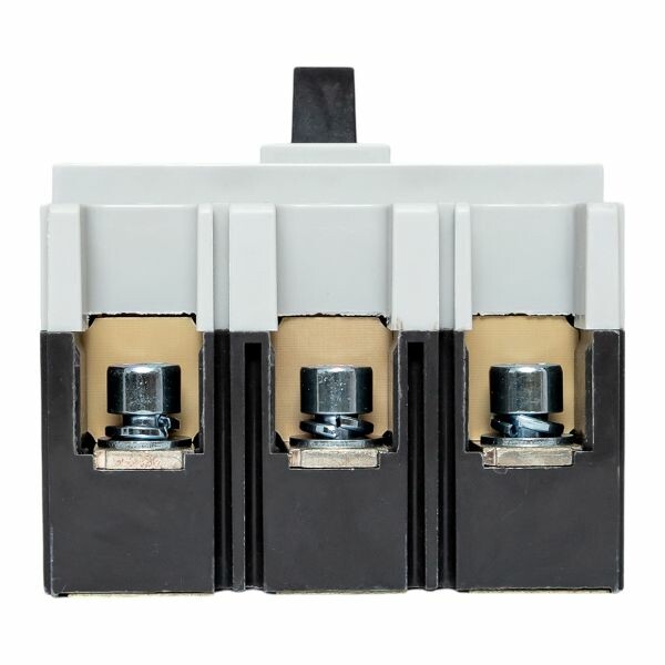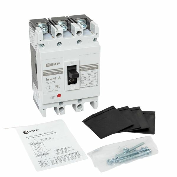 Выключатель ВА-99М выполнен в виде моноблока и состоит из основания и крышки с фальшпанелью, в которой имеется окно для рукоятки управления и толкатель кнопки «Тест» - проверки механизма отключения выключателя. Основание выполнено из термостойкой пластмассы, не поддерживающей горение и являющейся несущей конструкцией для присоединительных зажимов, неподвижных и подвижных контактов с системой дугогашения, механизма управления, блока защиты от сверхтоков. Крышка закрывает все подвижные элементы механизма управления и внутренние токоведущие части.