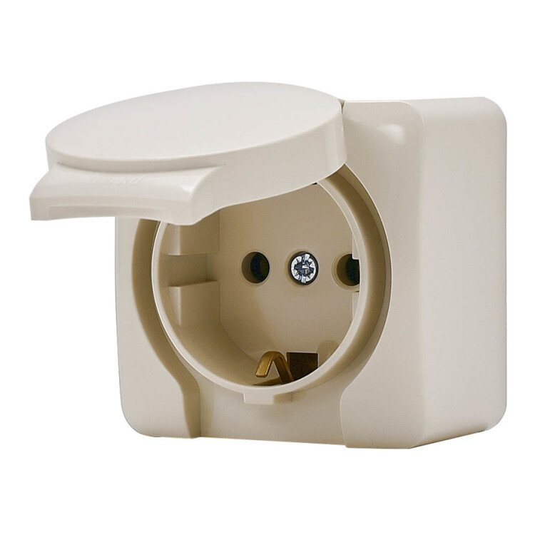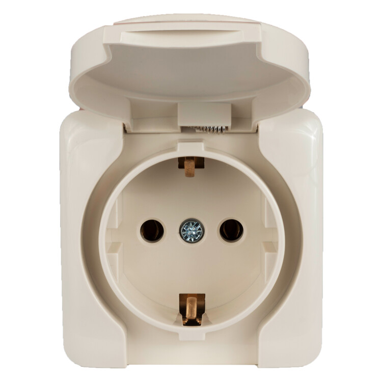 VIOLA Розетка 1-ая с/з с крышкой керамика крем LEZARD (12шт/144шт)