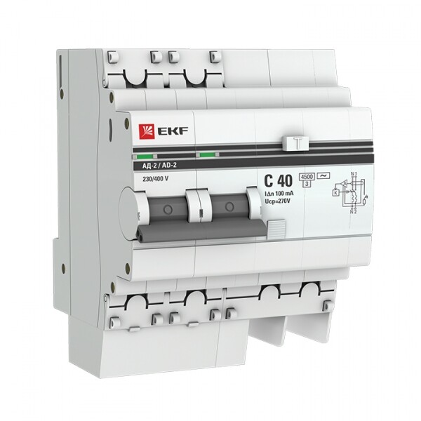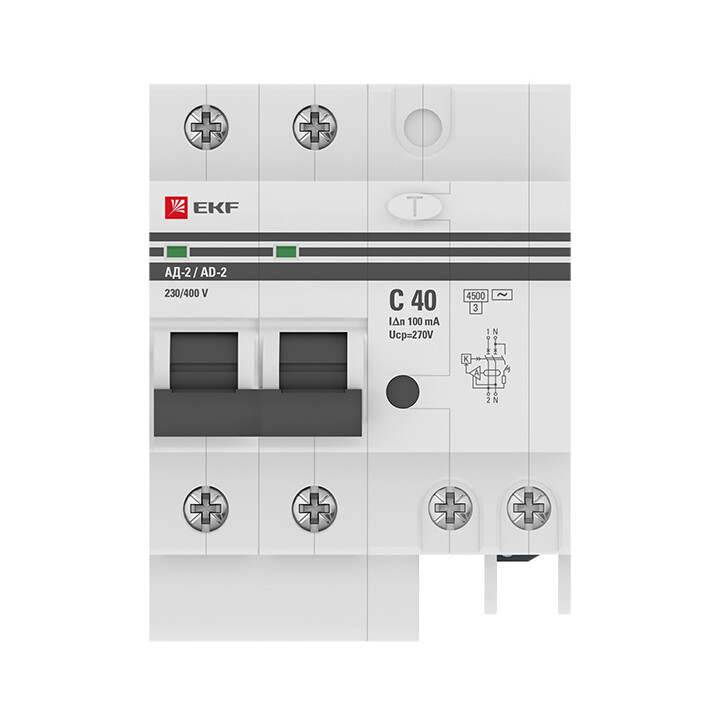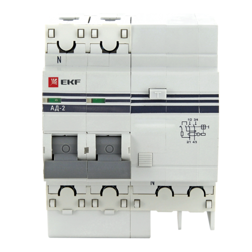 Дифференциальный автоматический выключатель АД-2(4) (S) EKF PROxima представляет собой аппарат, сочетающий функции автоматического выключателя с устройством защитного отключения. При обнаружении автоматическим выключателем в защищаемом участке сети тока утечки (повреждения) на землю или сверхтока (тока перегрузки или короткого замыкания) происходит срабатывание устройства, приводящее к отключению защищаемой сети. Особое отличие дифференциальных автоматов EKF – в наличии встроенного блока защиты от перенапряжения. АД-2 и АД-4 EKF PROxima выпускаются в стандартном и селективном (АД-2S, АД-4S) исполнениях.