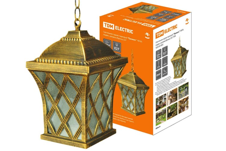 Светильник садово-парковый "Прованс" 100Вт подвес шагрень/бронза Е27 TDM