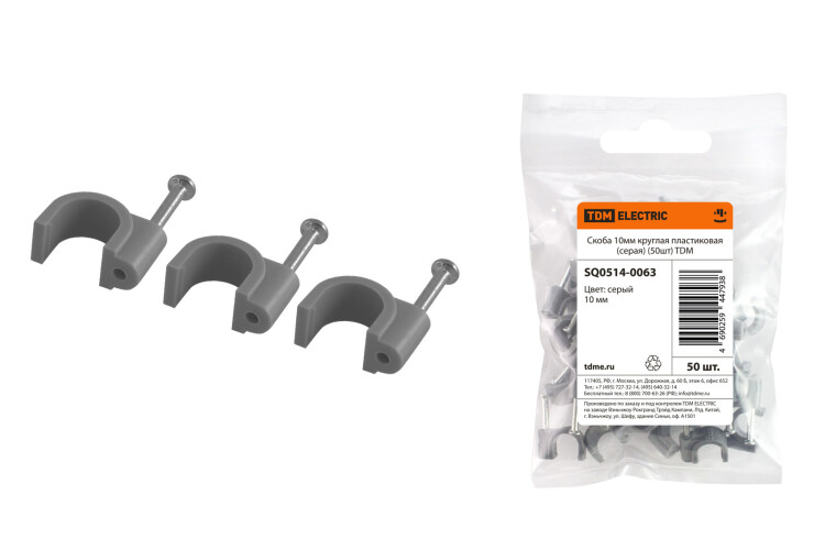 Скоба 10мм круглая пластиковая (50шт) TDM
