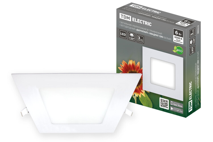 Светильник ультратонкий встраиваемый светодиодный "Даунлайт" квадрат СВО (белый) 6 Вт 6500К TDM