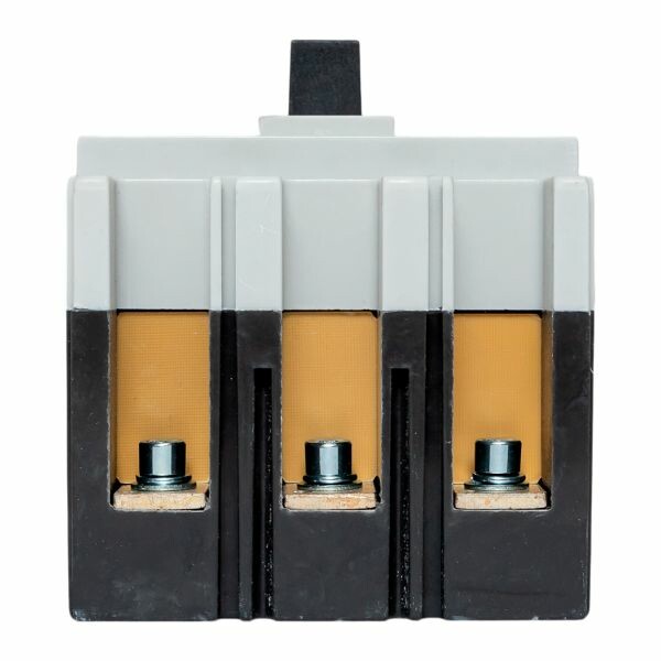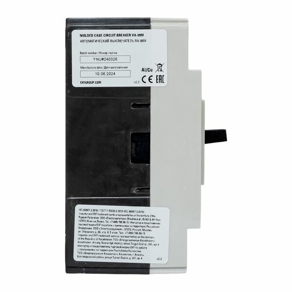 Выключатель ВА-99М выполнен в виде моноблока и состоит из основания и крышки с фальшпанелью, в которой имеется окно для рукоятки управления и толкатель кнопки «Тест» - проверки механизма отключения выключателя. Основание выполнено из термостойкой пластмассы, не поддерживающей горение и являющейся несущей конструкцией для присоединительных зажимов, неподвижных и подвижных контактов с системой дугогашения, механизма управления, блока защиты от сверхтоков. Крышка закрывает все подвижные элементы механизма управления и внутренние токоведущие части.