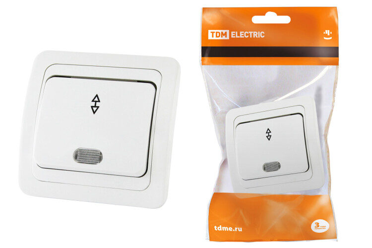 ВАЛДАЙ Переключатель 1-кл. с подсветкой 10А белый TDM (10/100шт)
