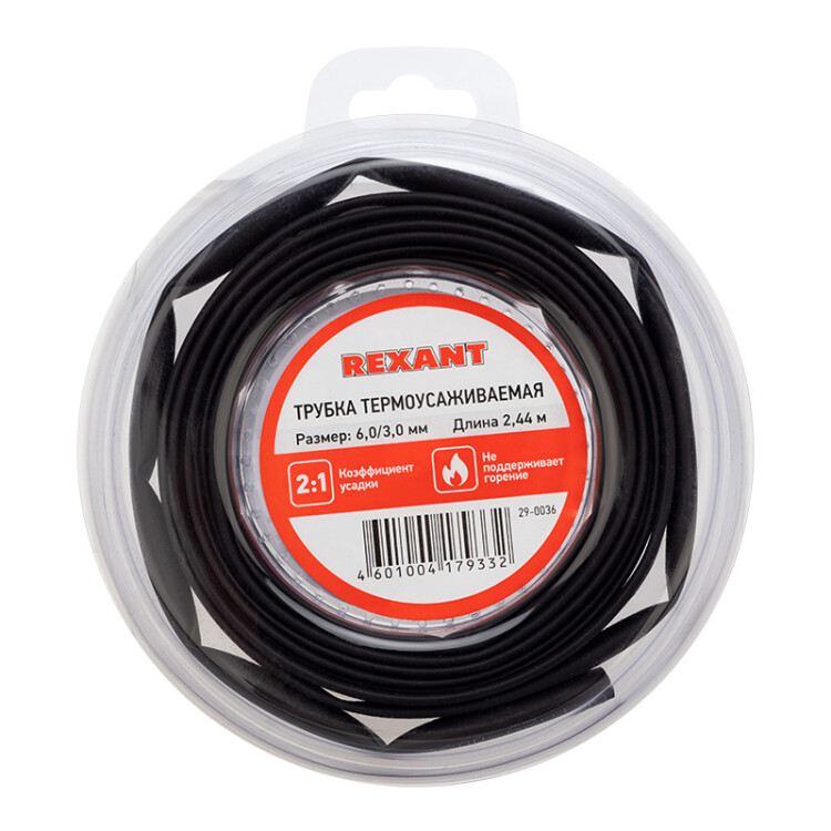 REXANT Трубка термоусаживаемая 6,0/3,0 мм черная, ролик 2,44 м