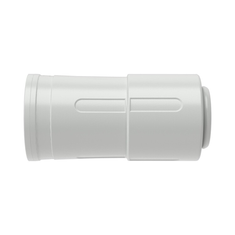 Переходник "Армированная труба - жесткая труба" для герметичного соединения жестких гладких и армированных труб. Диаметр - 20 мм. Материал: полипропилен/ резина. Степень пыле- и влагозащиты IP67. Цвет серый RAL 7035. Элемент системы может эксплуатироваться при широком диапазоне температур: от –25°С до +60 °С.