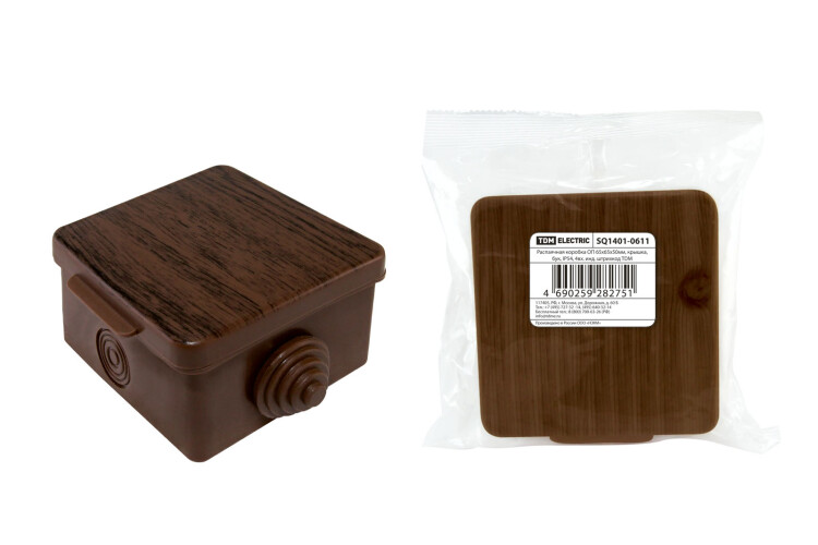 ЭКО Коробка распределительная о/у 4 гермоввода с крышкой 65х65х50мм IP54 бук TDM (45шт)