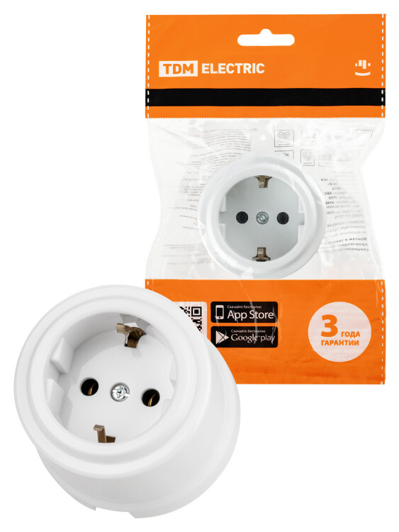 ВИВИ Розетка 1-ая 2П+З 16А пластик белый TDM