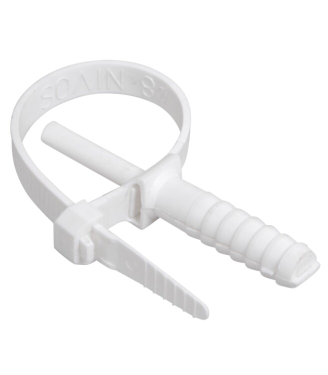 Хомут дюбельный предназанчен для быстрой и удобной прокладки проводки вдоль стен. Изделие обеспечивает легкость и быстроту монтажа, позволяя избавиться в процессе прокладки кабеля от классических дюбелей и шурупов.