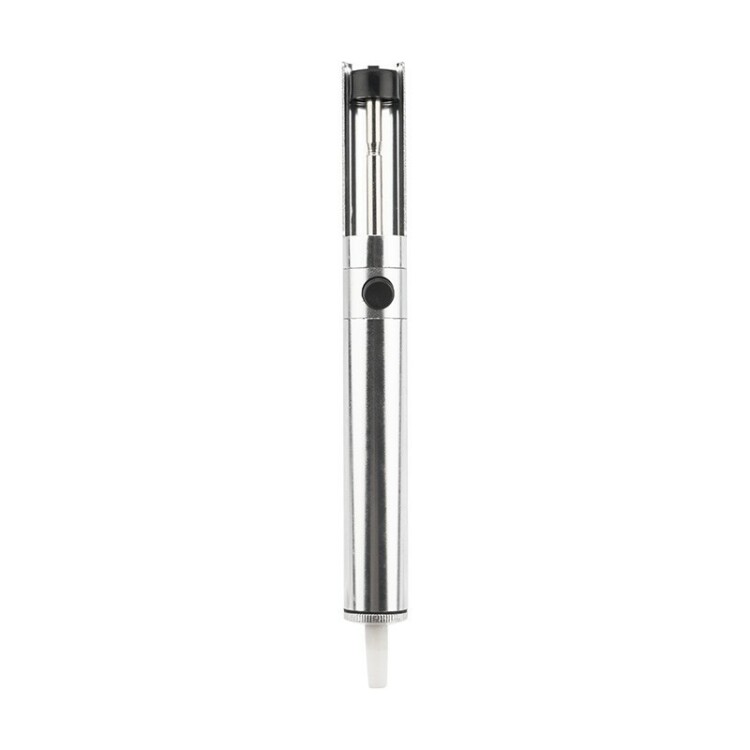 Представляет собой цилиндрическую трубку с вмонтированным внутри нее поршнем, который имеет фиксатор, и при создании разряжения работает как обычный шприц. Он рассчитан на работу одной рукой. Корпус изготавливается из металла (алюминий) и легко разбирается для обслуживания (смазка и очистка). Забор припоя производится посредством антистатического наконечника, который выполнен из теплостойкой пластмассы. Особенность данного оловоотсоса - специальный чистящий стержень, который удаляет остатки припоя после каждого использования, не допуская, таким образом, засорения канала.Общий размер: 23x200 ммМатериал корпуса: алюминийДиаметр антистатического наконечника: 3.2 ммОловоотсос служит для удаления излишков или остатков металлического припоя, которые образуются в процессе монтажа или демонтажа радиоэлементов.