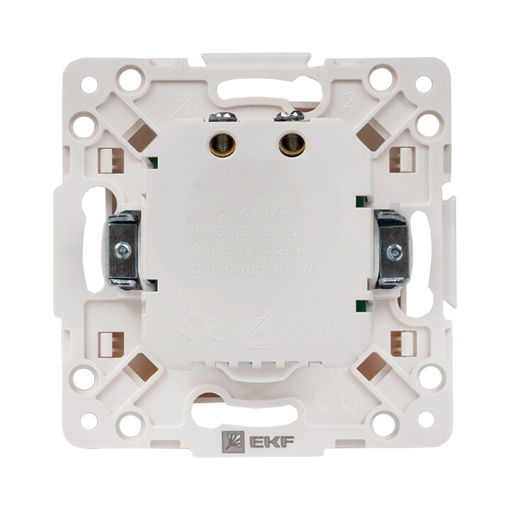 Стокгольм Механизм Розетки USB 2-местной 2,1А винтовые клеммы белый EKF PROxima