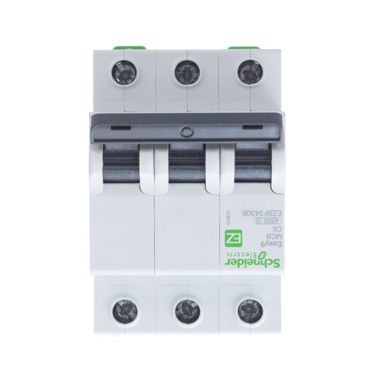Автоматический выключатель серии Easy9 Schneider Electric, 3-полюсный, номинальный ток 6 А, характеристика С, Icn = 4.5 кА.