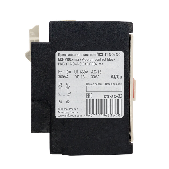 Приставки контактные предназначены для увеличения количества вспомогательных контактов контакторов КМЭ EKF PROxima и КТЭ EKF PROxima. На каждый из контакторов можно установить 2- или 4-контактную приставку с различным набором размыкающих и замыкающих контактов. Контактные приставки механически соединяются с контакторами и фиксируются при помощи защелки.