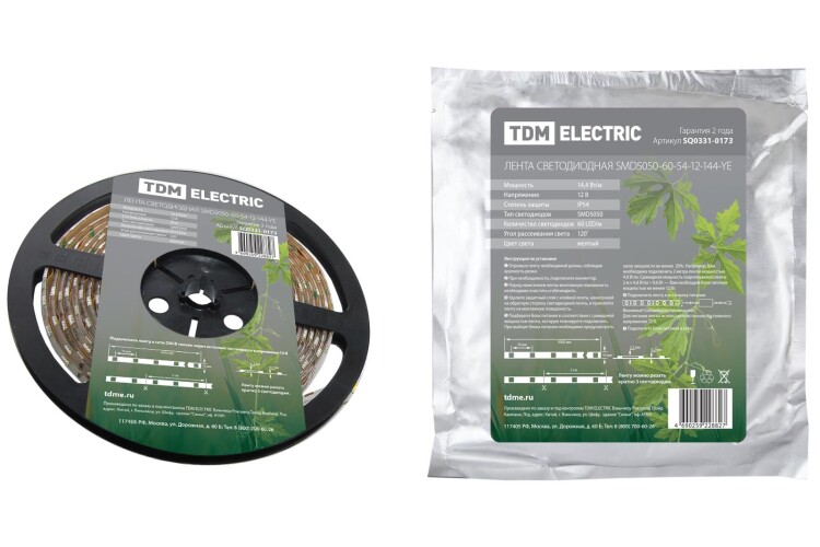 Применение:Для декоративной и функциональной подсветки. Подсветка витрин с ювелирными изделиями и торговых экспозиций.Декоративная подсветка мебели, торцевая подсветка стеклянных полок, баров, витражей и витрин.Контурная подсветка лестниц.Контурная подсветка рекламных букв и коробов.Освещение потолочных конструкций, ниш, интерьерных сооружений.Тюнинг автомобилей.Освещение холодильных и морозильных установок. Материалы:Гибкая медная плата.Клейкая лента 3М с высокими адгезивными свойствами.Световой поток светодиодного чипа SMD2835 56 лм, SMD5050 1113 лм.Материал заливки (IP65) полиуретан.Каждый отрезок 0,5 м промаркирован логотипом TDM ELECTRIC.Преимущества:Простота монтажа. Ленту можно резать кратно 3 светодиодам для удобства на лицевой стороне ленты места отреза обозначены символом Ножницы. На оборотной стороне ленты нанесен клеевой слой производства 3М мирового лидера в производстве клеевых материалов.Долгий срок службы. Применение качественных светодиодов, а также грамотный подбор резисторов гарантируют долгий срок службы (50 000 часов) и снижение светового потока не более чем 2% на каждые 1000 часов работы.Безопасность эксплуатации. Светодиодная лента работает от низкого напряжения 12 В, что абсолютно безопасно для человека. Безопасно для зрения отсутствие пульсаций светового потока. Экологически безопасно не содержит ртути, не требует специальной утилизации.Возможность использования при низких температурах. Для обеспечения степени защиты IP54 в герметичной ленте используется полиуретан материал, который не теряет эластичности при низких температурах (до -40 С).Удобство хранения. Светодиодная лента поставляется в фольгированных ZIP-пакетах, что предоставляет возможность длительного хранения отрезков ленты, защищая их от высыхания клеевого слоя, статического электричества, влажности и пыли.Гарантия качества. Каждый отрезок светодиодной ленты промаркирован знаком TDM, что гарантирует защиту от подделок. На светодиодную ленту предоставляется гарантия 2 года. 0: Применение:Для декоративной и функциональной подсветки. Подсветка витрин с ювелирными изделиями и торговых экспозиций.Декоративная подсветка мебели, торцевая подсветка стеклянных полок, баров, витражей и витрин.Контурная подсветка лестниц.Контурная подсветка рекламных букв и коробов.Освещение потолочных конструкций, ниш, интерьерных сооружений.Тюнинг автомобилей.Освещение холодильных и морозильных установок.