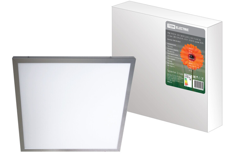 Ультратонкая светодиодная панель СВО 595х595 40Вт 3000К хром TDM