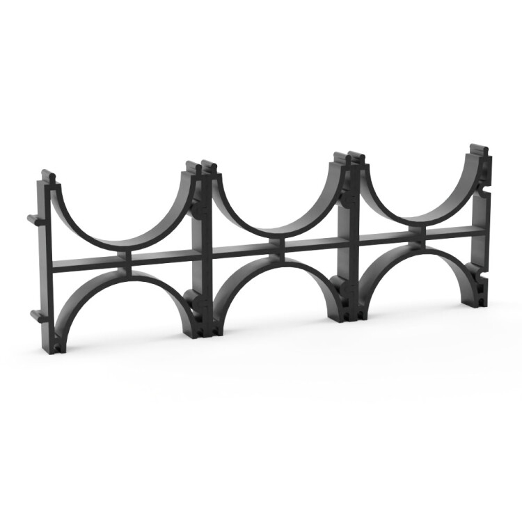 Предназначен для крепления и упорядочивания гибких, жёстких, дренажных и ливневых двустенных гофрированных труб одного диаметра при блочном монтаже.