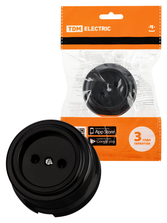 ВИВИ Розетка 2П 10А 250В черная TDM