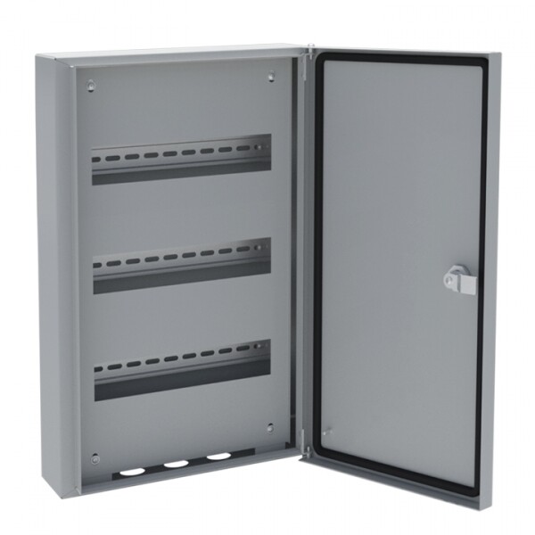 Корпуса электрощитов серии Basic являются функциональными аналогами корпусов серии PROxima и представляют ее бюджетное исполнение. Предназначены для размещения модульного оборудования, от 12 до 48 модулей и номинальный ток 125А. На дверь нанесен сплошной полиуретановый