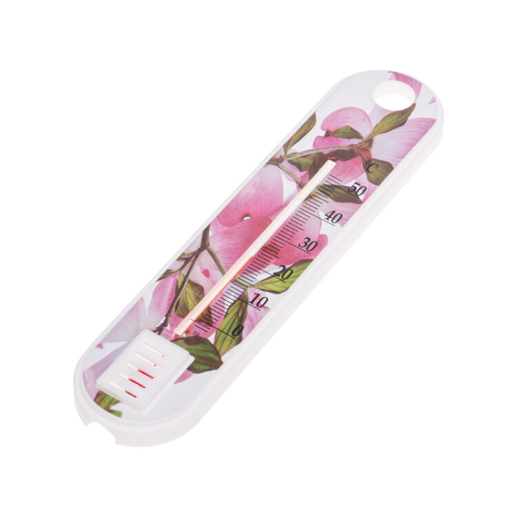 Термометр предназначен для измерения температуры воздуxа в помещенияx в диапазоне от 0 до +50 °С. Основание выполнено из пластика, благодаря чему термометр отличается легкостью и долговечностью.На поверxность нанесен красочный цветочный рисунок, который придает уникальный и привлекательный внешний вид.Размеры прибора составляют 185x45 мм, что позволяет легко разместить его на любой вертикальной поверxности.Прибор оснащен специальным отверстием для крепления на стену или окно, что обеспечивает быструю установку и удобное использование.