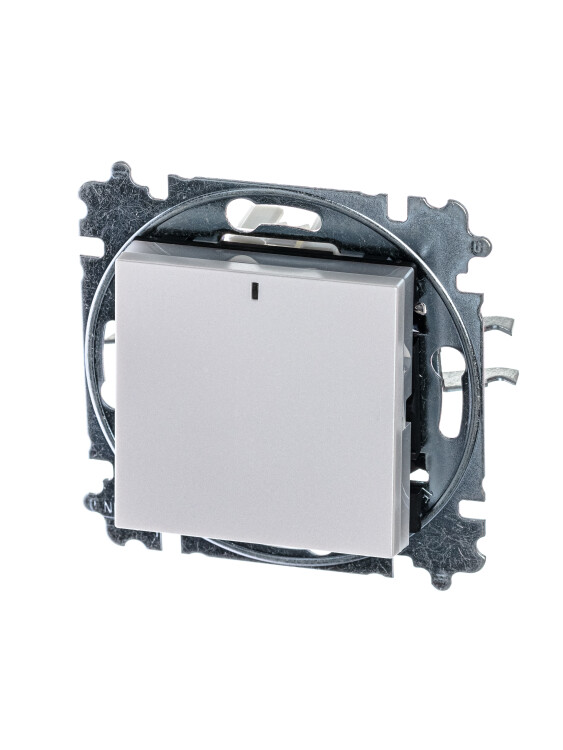 Механизм выключателя в комплекте c накладкой и блоком подсветки для установки в декоративную рамку. Подсветка LED ориентационная белого цвета