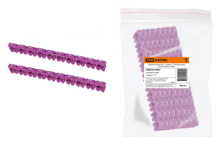 Маркер наборный - символ "7" фиолетовый 6 мм2 (100 шт.) TDM