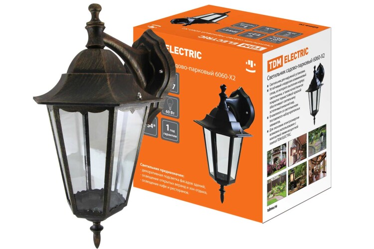 Светильник 6060-12 садово-парковый шестигранник, 60Вт, вниз, бронза TDM