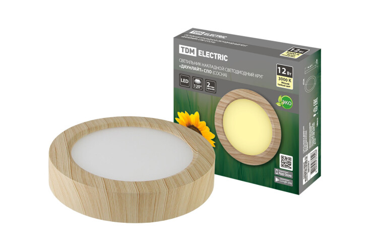 Светильник накладной светодиодный круг "Даунлайт" СПО (сосна) 12 Вт 170*32 мм 3000К TDM