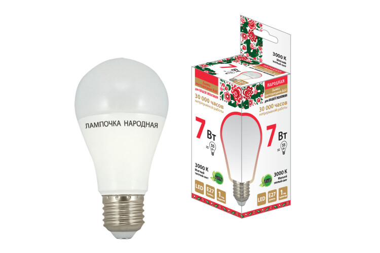 Лампа светодиодная НЛ-LED-A60-7Вт-3000К-Е27 58х109мм "Народная"